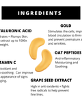 Gold brightens, hyaluronic acid moisturizes and hydrogel locks it all in.