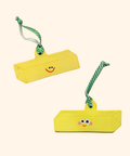 A silly little hand painted ceramic butter ornament featuring a happy side and a miffed side, celebrating all of life's ups and downs.