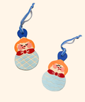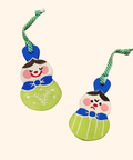 A silly little hand painted ceramic clown ornament featuring a happy side and a miffed side, celebrating all of life's ups and downs.