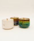 The grip cup candle is a refillable, wheel thrown ceramic vessel with an indent on either side for nestling your thumb and pointer finger. Once you burn the candle all the way through, clean out the vessel and use it as a cup for your morning espresso or favorite glass of wine.