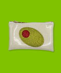 Olive it, and you will too! This sparkly Olive Keychain Clutch on White Glitter Vinyl is the chicest little garnish you’ll ever carry! Perfect for holding your cash, cards, or tiny treasures, this mini martini muse can clip right onto your keys (through it's XOXO zipper!) for a pop of dirty glam. A little retro, a little fancy, and totally olive-y!