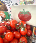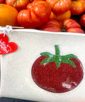 This eye-catching statement piece features a bold red glitter tomato appliqué with sparkling green leaves, set on a frosty white glitter base and finished with a clear glossy overlay!