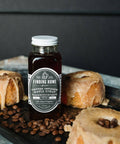This delectable condiment is made by hot pressing the syrup through ground coffee to create a truly amazing "brewed" coffee maple syrup.