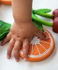 CLEMENTINO THE ORANGE is a fruit-shaped baby toy perfect for teething, sensory play, and bath time - all the while introducing them to a healthy lifestyle at an early age! Safe for kids, worry-free play!
