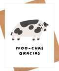 Say thank you with a dash of humor and a touch of Spanish flair with this "Moo-chas Gracias" greeting card! Featuring a cute cow illustration and a clever Spanish pun, this card is the perfect way to express your gratitude with a smile.
