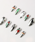A cool and unique set of reusable press-on nails featuring playful designs!